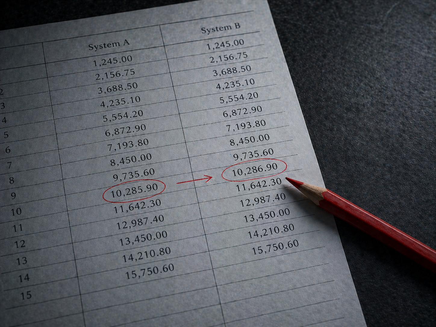 Match transactions across systems, identify discrepancies, flag for investigation.