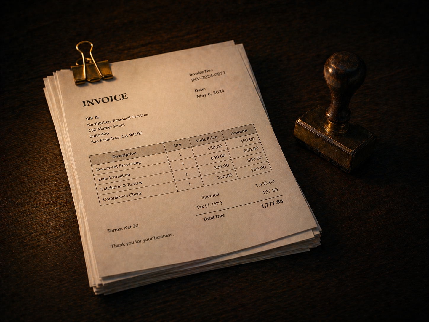 Match invoices to POs, check pricing, validate tax calculations, route exceptions.